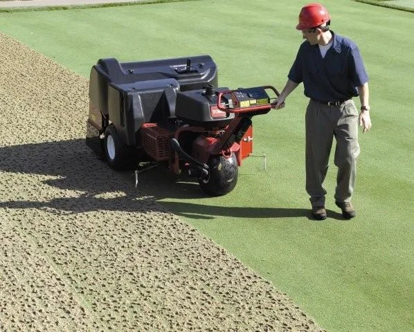 Long considered the leading turfgrass aerator, the ProCore® 648 core aerates at variable speeds and hole patterns, and the rear wheels are within the 48" width so the tires are not running over the freshly aerated areas. Rented with 4-tine, 6-tine, or 10-tine aeration tine holders.